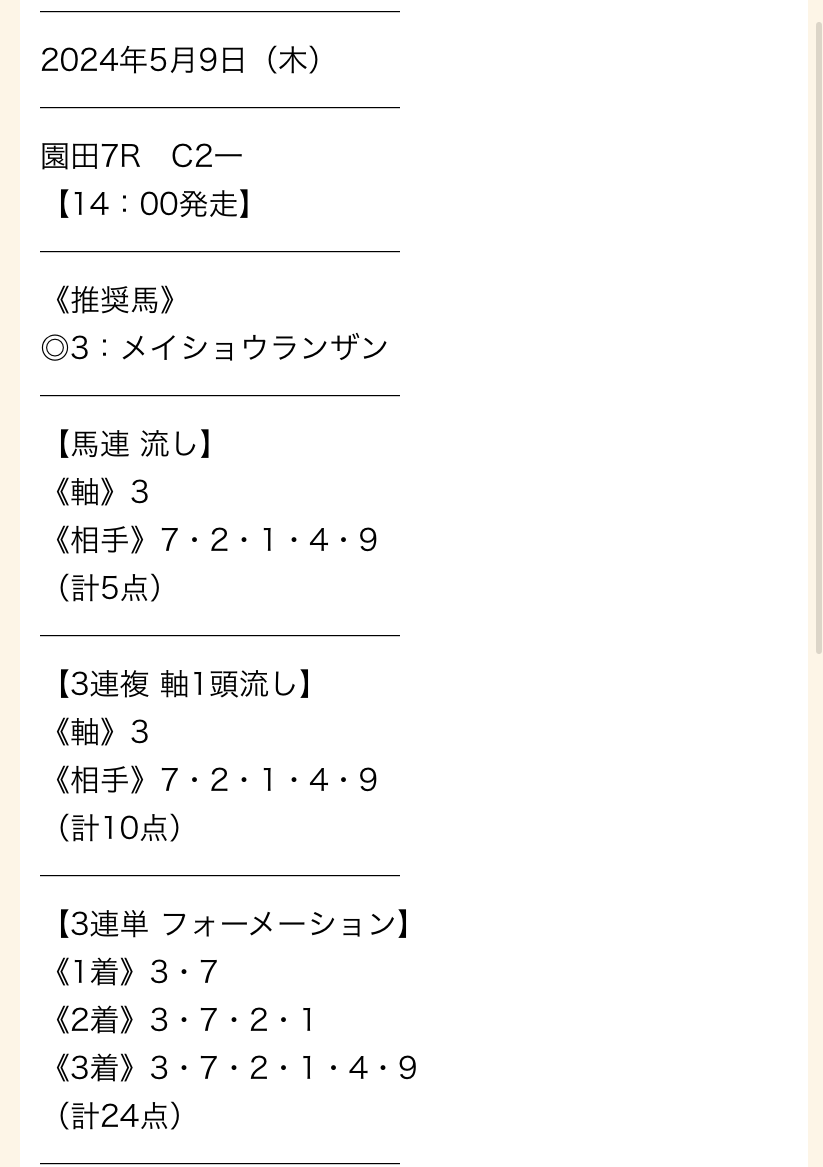 毎回、買い目を公開。当たらなくて普通の当たればラッキー馬券