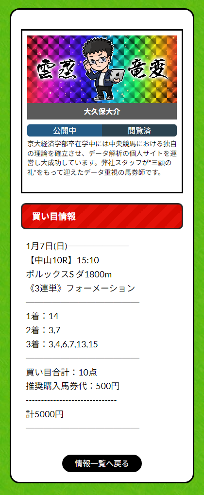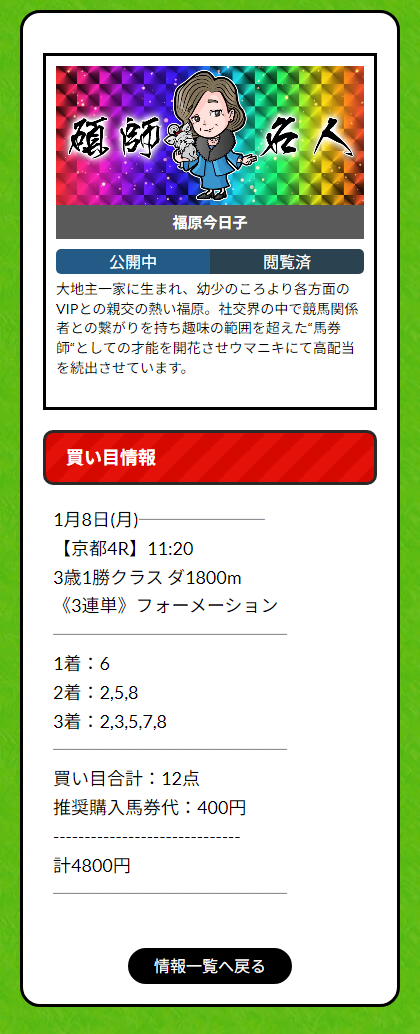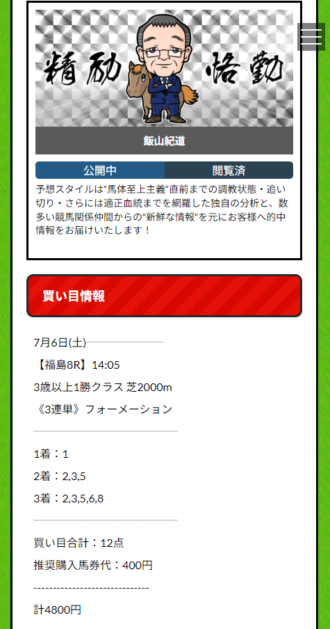| 的中率 | 回収率 | 無料予想 | 有料予想 | 高配当 |