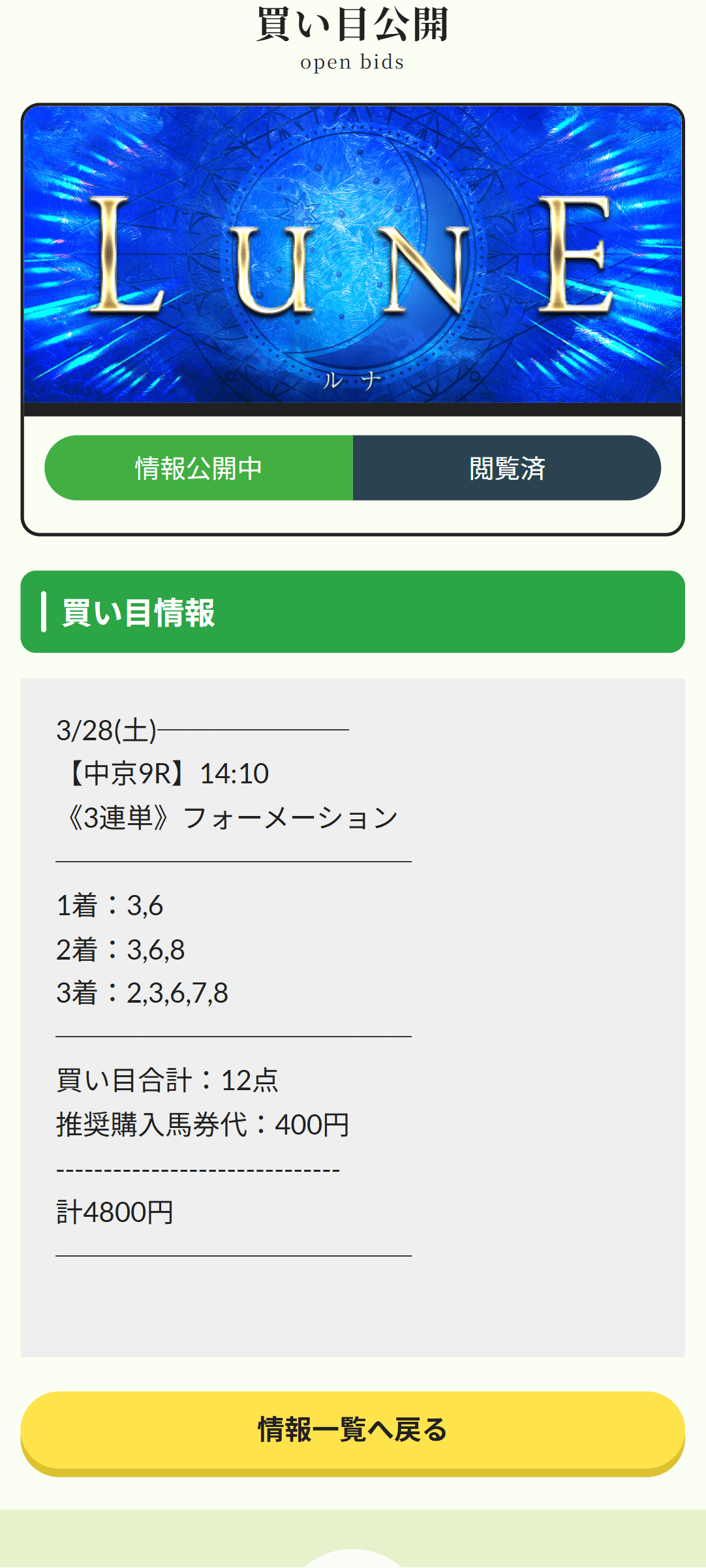 給料日前って、数千円の重みがいつも以上にデカいんですよ。自分は28歳の会社員なんで、その感覚がすごく分かるんですが、えぶりのルナはその数千円をちゃんと意味のあるお金に変えてくれた感じでした。3月28日(土)の中京9Rで、400円×12点の計4,800円。ここまではわりと現実的に参加しやすい額だと思います。それが払戻167,640円まで伸びたのは、普通にテンション上がりました。何百万みたいな派手さとは別で、これくらいの払戻って逆にリアルなんですよね。家賃、カード、食費、ちょっとした贅沢までちゃんと視野に入る額。ルナは「夢物語」じゃなくて、会社員の自分でも手を出しやすい温度感だったのが良かったです。