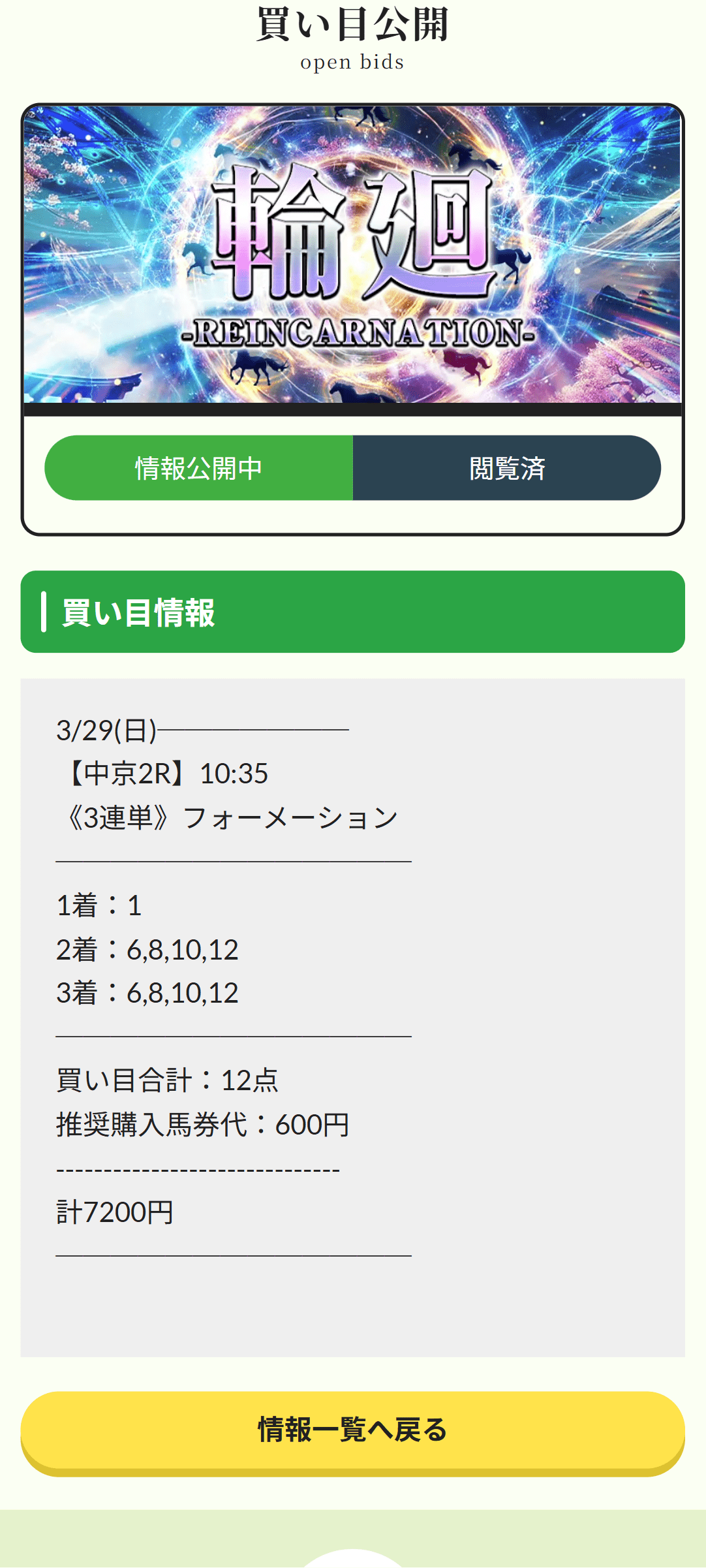 3月29日(日)の中京2Rで、馬券代7,200円が払戻2,605,320円。