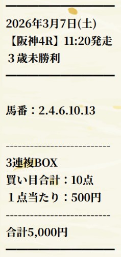 3月7日(土)阪神4R見事的中